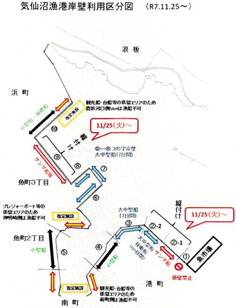 さて、これから気仙沼漁港においては、サンマ船の切り上げ等により係留岸壁が混雑する時期となり、水揚げに伴う大型船の利用や荒天による避難入港の際には、係留場所が不足することが懸念されます。