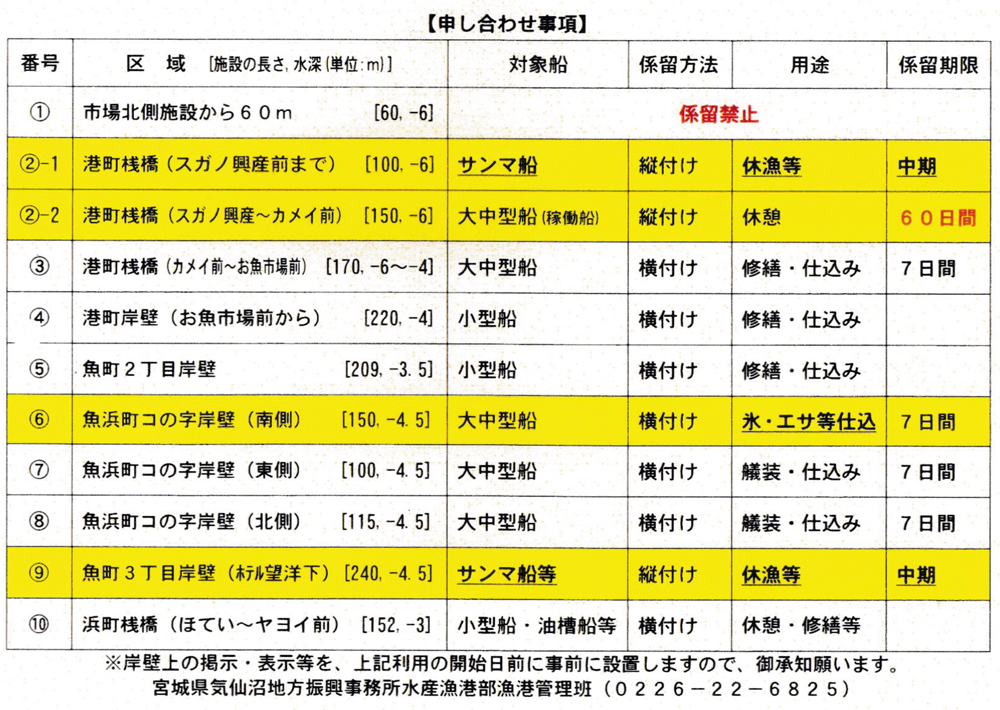 宮城県気仙沼地方振興事務所水産漁港部漁港管理班(0226-22-6825)